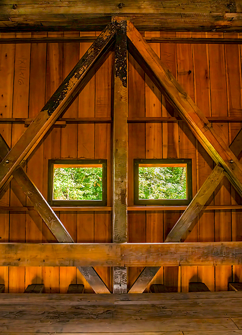 Agree with Judith on the symmetry and the geometry of the subject. I find the image a bit dark. A bit of light would bring out the details in the old wood and also highlight the green in the background? Tried that. Let me know if this works.Thank you. |