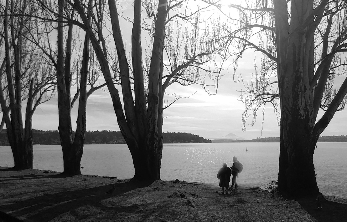 OK, I took a different view of this. I like the tighter crop made by Stuart and that was actually my first step since Stephen had suggested it, but then I felt the right hand side was weakened and I preferred the people not to be so much in the centre, so i decided to crop and then flip them so they were looking into the frame. I didn't do it very well but I hope you get the idea. I do think the diagonal path needs to go. The contrast looked well on my monitor. |