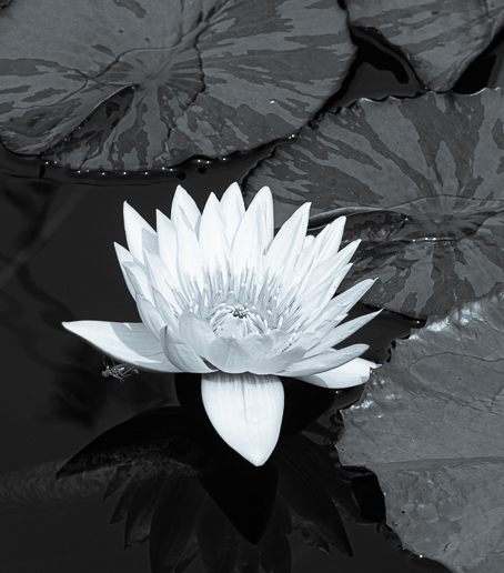 I also noticed the blue sheen probably most noticeable in the flower and Tom's doesn't show it. I would crop the top so the edge goes through the lily pads, making it a square format with the flower centrally placed. In fact I took off a little bit on the other 3 sides as well to place it exactly where I wanted it. |