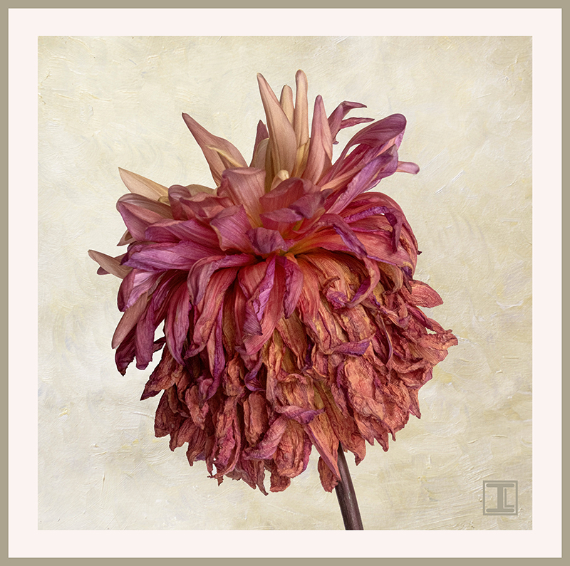 Thanks, Darcy. I think that having the flower pointing up is a definite improvement, and maybe it should be flipped to point to the right as well? I also like the crop suggestion and maybe with the distort tool, I could even turn it into a square composition which will go well with the rest of the dahlias in my September 2023 collection. |