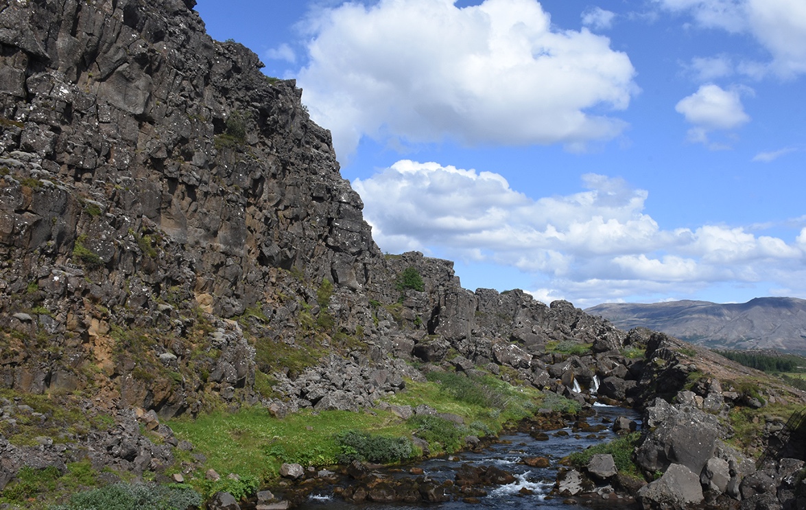 This is a beautiful place with rocks having beautiful texture and water having beautiful reflection of sky. But the story is somewhat disturbing that might be better expressed with different settings. What I read from your picture is a pleasant touring and I was more attracted by the texture of the rocks instead of the pool.