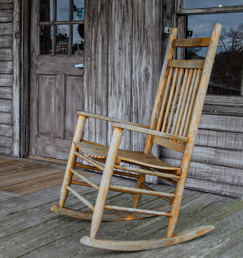 Hi Richard Great image full of vintage faded charm. The black and white conversion has brought out a lot of texture that is not obvious in the color version and so I can see the value of this. At the same time it means the background competes with the rocker much more. The color version provides separation due to the colour contrast. In saying this I am assuming the focus is the chair and if it is I would crop it down to something more like square and retaining the colour version, use clarity and texture to bring up the texture in the colour version. I had a go at that |