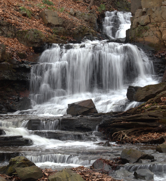 Hi Anna, I like your treatment of the water with the use of a longer shutter to get some blur in the falls. And I can see from the Original that its a late fall image with plenty of brown leaves in the scene. I thought the branch in the foreground is a messy distraction and that it could go. But overall the image seems to lack balance and I think there is only so much you can do about it now. The river starts hard right and then s back to the right hand side and we have a large area of dark tones on almost the left half of the image. I tried a crop to remove it. The original had soft fall tones that I liked but the B and W conversion is quite high contrast. So I worked with the original, increasing the saturation of the reds and yellows |