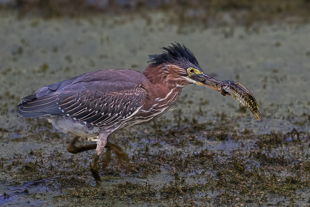 Mary, any time you can get a bird doing something especially having a fish in it beak is super! I think what Bev did was going in the right direction. The background is still blown out. I went even further and I hope not too far. I may have over sharpened the heron. I think I like your heron and my background. |