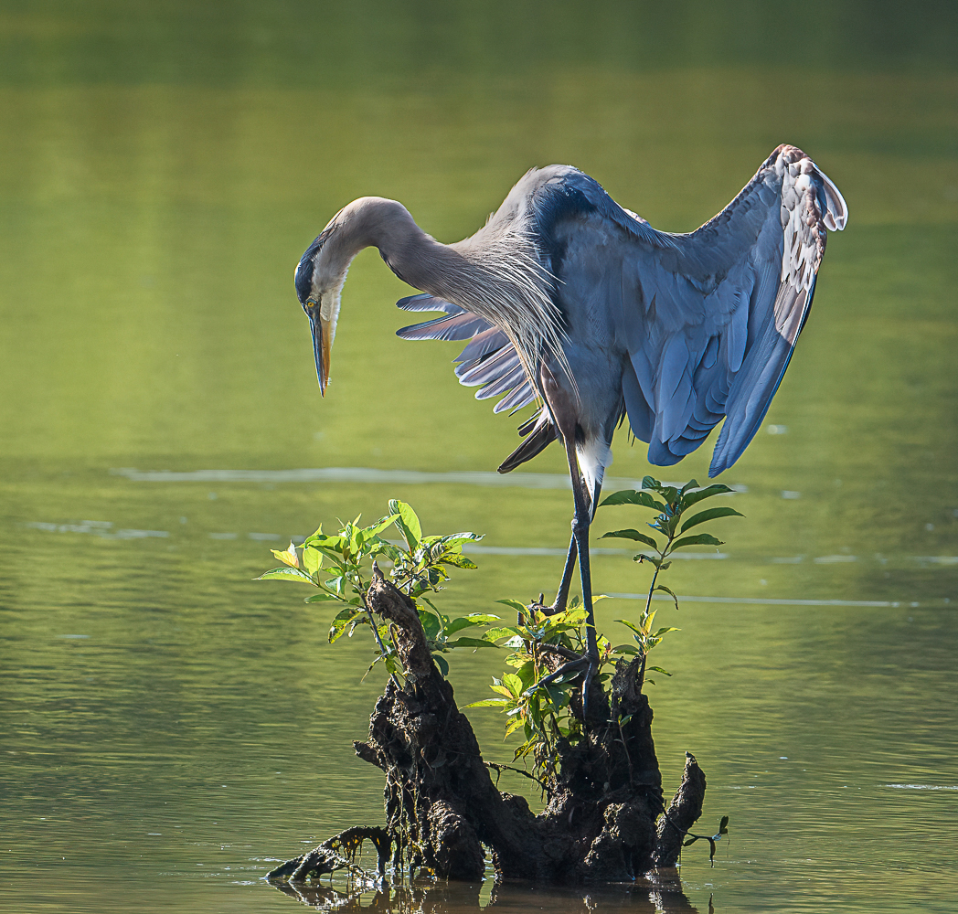 Sarita, I think this is a gorgeous image and a real catch. Love the detail, sharpness and pose. When eyes are so important to wildlife I took the liberties to enhance the eye on this great blue. Also toned down the top of the neck and the water streaks slightly. This is a super image even with no edits. Well done. |