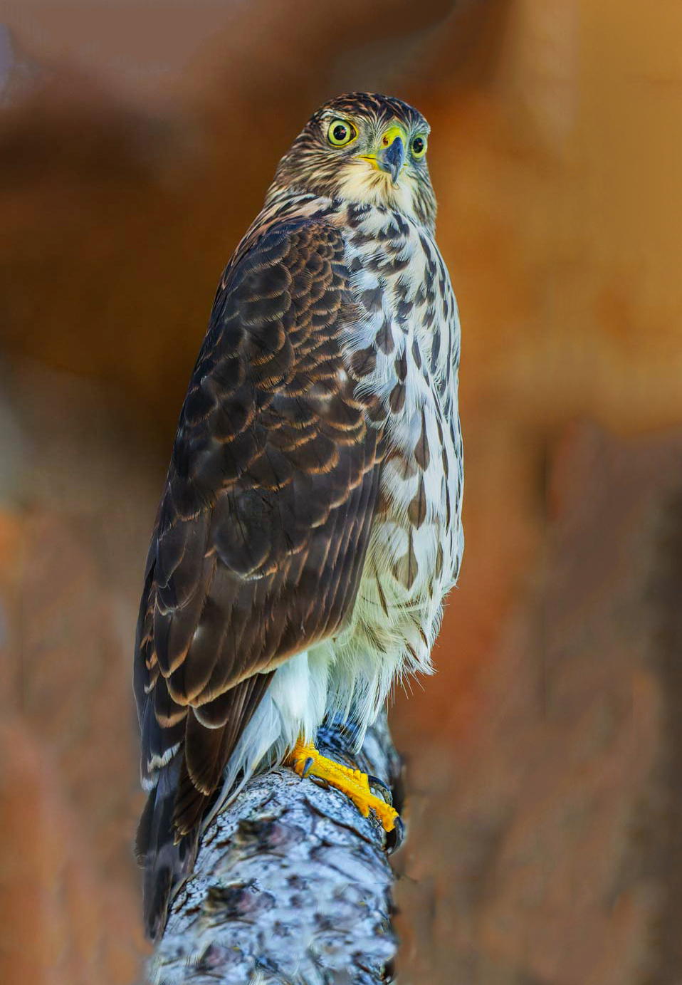 Michael, This is a amazing image of a Cooper's hawk! I got the feeling that you had too long a lens when you got the shot. Clarity, detail and sharpness is outstanding. Hope you don't mind that I took the liberty to edit it a little. First one I added tail feathers and the second a portrait. Great catch!!! |