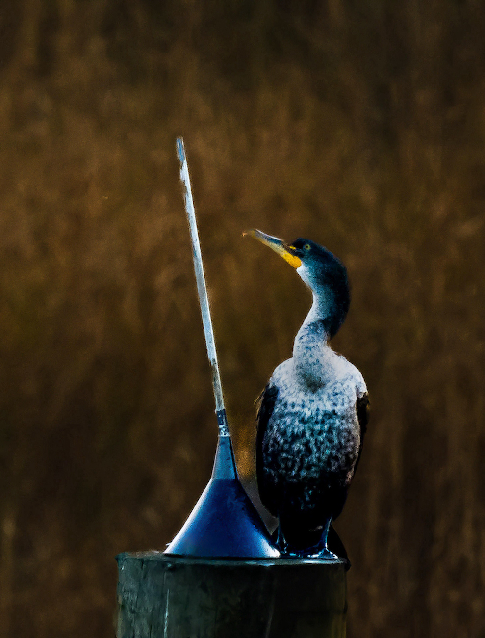 Jim, this is a beautiful image of a cormorant. My draw to this image are the feathers on the left wing and the head. beautiful!! The water doesn't bother me. I love the portrayal of sheer power and strength of this bird. It has great visual impact and interest. |
