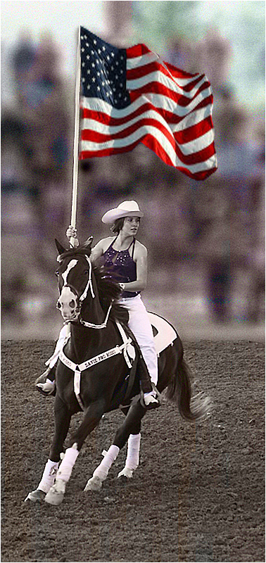 Bev, I really like what you have done with this image. The background was very distracting and busy and by blurring it turned it into a nice soft background. It also looks like you did a layer transformation of the rider and ground to b&w. Very nice work and a good story. |