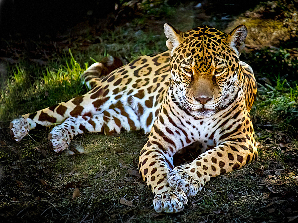 Jamie, super image! The lighting accents the mood of the big cat. I like the way you did a vignette that makes your eyes go right to his face, chest and paws. It has sharpness in the critical areas. Only fault is the back foot is cut off. Very nice all in all. |