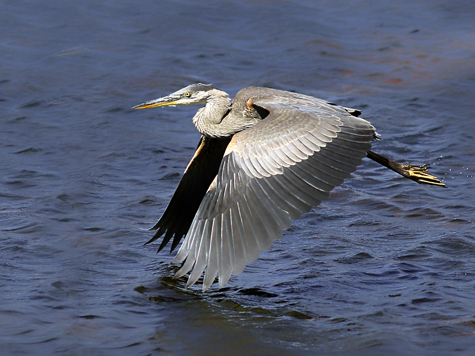 Jim, Very nice image of a Great Blue. You caught him perfectly and I like the wing tips just touching the water and the droplets coming off his tail feathers. I did add a little space in front of him for space to fly into. Image shows very good technical proficiency. Love those Great Blue Herons. Well done. |