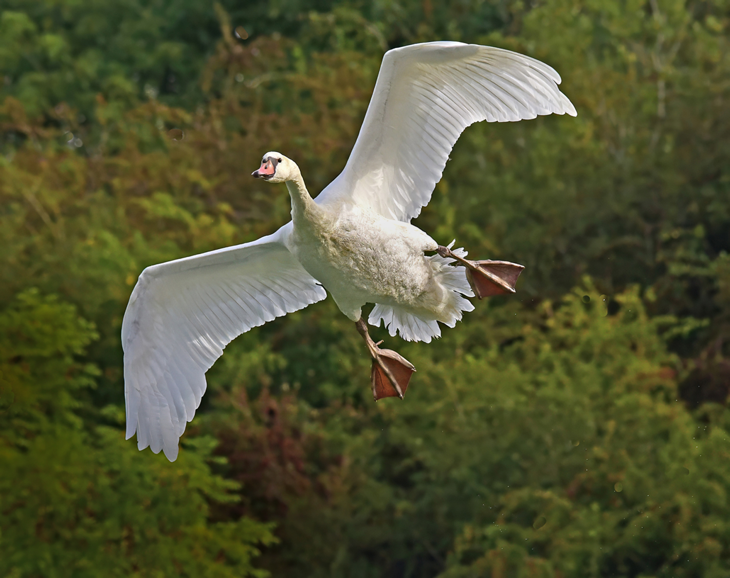 Super image Mike. Caught at the peak of action. Your mute swan has very good tonality and nice detail especially when you are shooting a white bird. Wish the tree in the lower left was darker but sometimes with wildlife it is what it is. Well done. |
