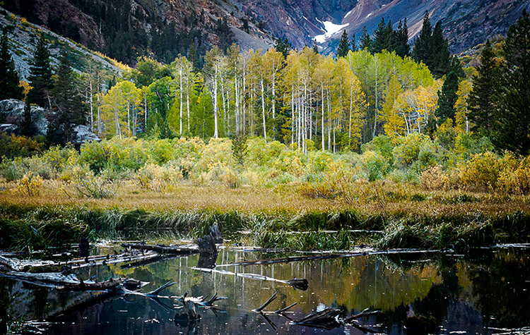 Ted, this is a gorgeous landscape. Agree with Theresa that there is a white object should be cloned out. Most of the time I like clouds in the sky but in this case a plain blue sky is perfect because it doesn't interfere with that excellent mountain reflection. I really like the sharpness of the foreground and that stand of trees. To me the softness of the mountains give it depth. Very nice job Ted. |