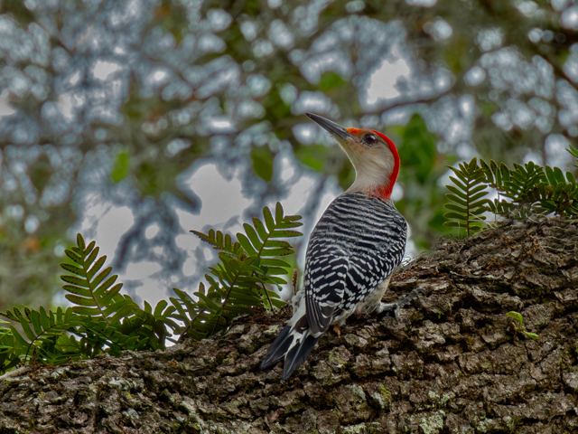 Ron, you caught this Red-Bellied Woodpecker at the perfect moment! Love the turn of the head, it really made this image. Perfect branch leading line. Just my opinion but I thought the sky was just too bright. I toned it down and cloned a few areas. What do you think? |