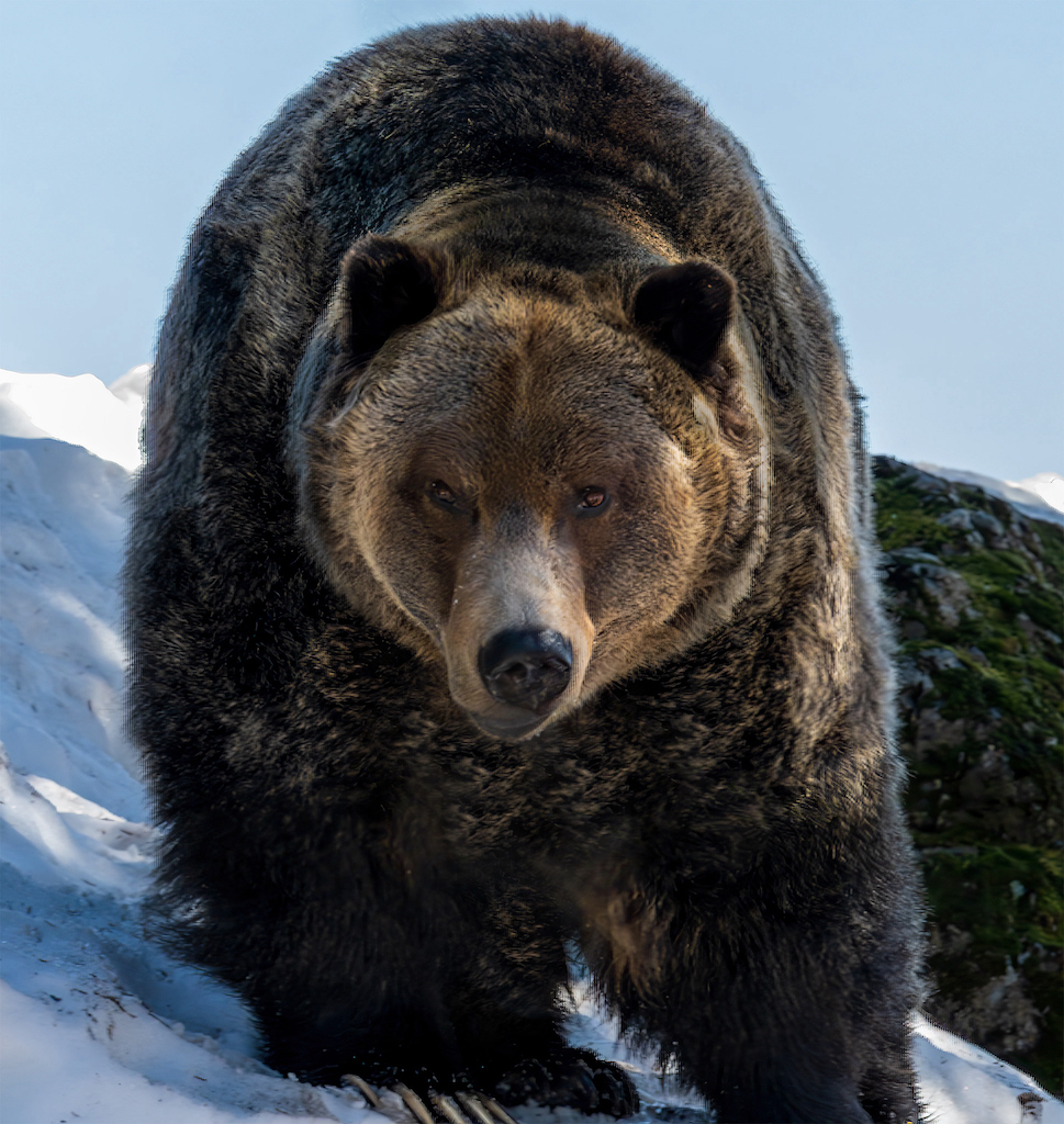 Mary Ann, amazing Grizzly image. If I saw this guy coming towards me fence or no fence I would be running as fast as I could go in the opposite direction!!! Wish his left foot wasn't cut off. Did a small amount more editing to get rid of the chest reflections. Image certainly has good emotional reaction and has huge impact and interest. |