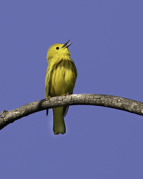 Really like your image of the Yellow Warbler. You caught him at the perfect moment singing to his mate. The colors and detail are excellent. Only suggestion I might make is to crop that very long branch and to lighten under his tail. What do you think Jim? |