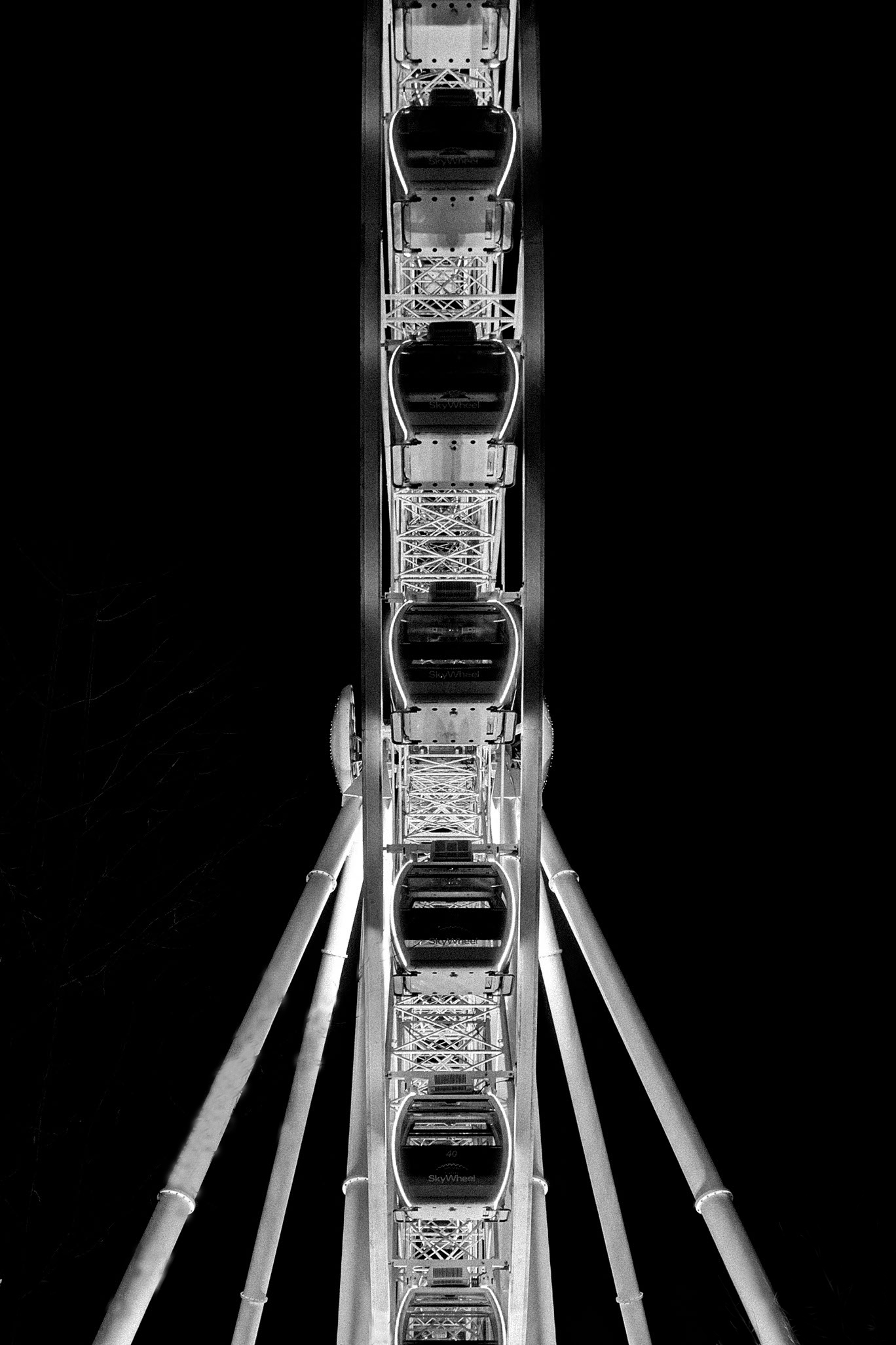 Stewart, your image is tack sharp and has super visual impact and interest. Before reading your description I tried to figure out what your abstract image was. I thought it may be a Leatherman Tool from the side. Great eye on seeing this Ferris Wheel from the side. Some members of our group wanted the trees removed but it was hard to say so I removed them. Hate to say it by I think is is excellent either way. |