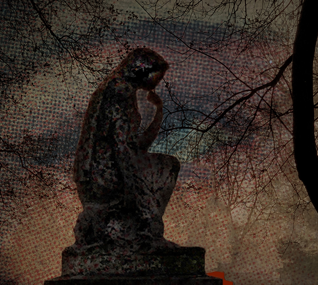 Bridget, I am thrilled with your imagination in this image and hope you don't mind I am still playing with it. I moved the statue so your eye and tree elements are prominent. Emphasizing the eye and tree elements by shifting the statue could create a stronger visual focal point and a more intentional flow through the scene. What do you think?