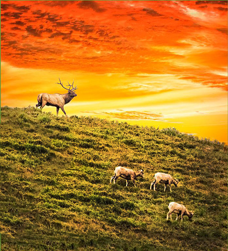 Took a shot at a rework - burned in the grass and sheep and tried to change some of the grass that appears, to me, to be cloned. I like the composition Jerry created too. |
