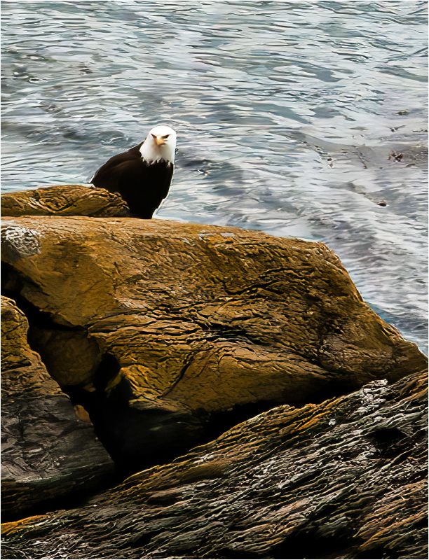 I cropped down to get both the rocks and the eagle. Then I brought it into Topaz AI Gigapixel and doubled the size. Had I played with it more, I would have tried to bring back the feathers in the eagle. |