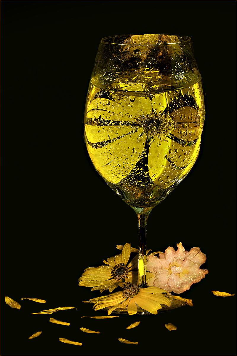 I agree with David about the distracting flowers. I selected the subject which turned out pretty good. There were a few spots I had to add in or remove. After Inversing the selection, I used the brush to paint black over the image leaving the final. I would have liked to remove the top flower in the glass but didn't have the patience to try. Really nice "shoot-thru" image though. Good job. |