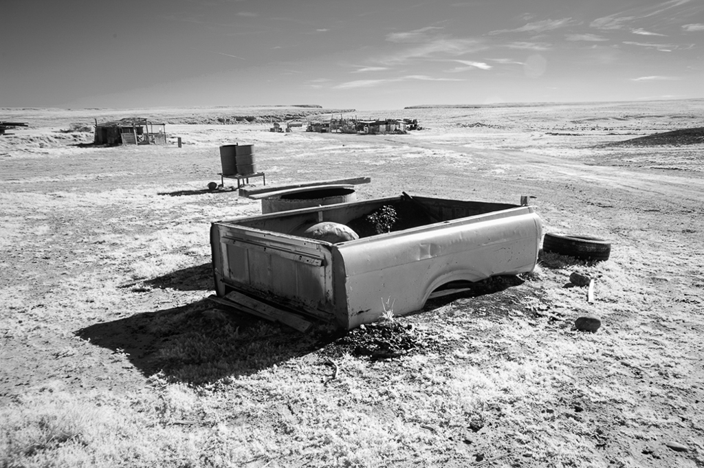 I have spent quite a bit of time wandering around back roads in New Mexico and I think you have found an interesting subject here. I am guessing that you have a 665nm conversion which allows orange and yellow light to come in. But I am not sure what you mean about orange and yellow channels as the channels are only Red, Green and Blue (RGB). Did you do a "channel swap" in Photoshop and then convert to monchrome or just start with a hue and saturation layer to get this effect? If you have not used the channel swap layer, you might want to go back to the original and try that. Then adjust contrast so you have white whites without blowing out the highlights and black blacks without losing detail in the shadows. I think it makes for a crisper monochrome. I am attaching visual feedback. See what you think. |