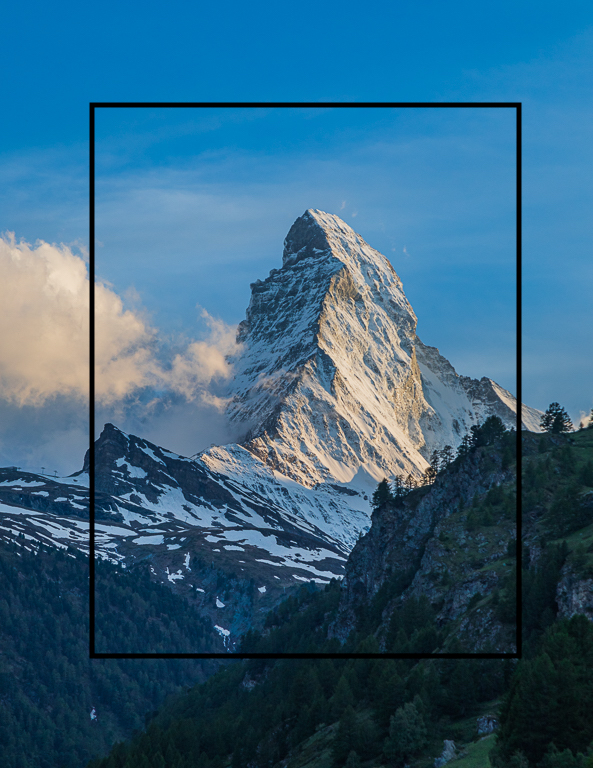 How lucky you are to have been able to visit this beautiful location. I agree with you and the others that waming iup the face of the mountain is a very nice enhancement. I am generally partial to square crops and use them a lot, but for me a vertical crop for this image would add to the sense of the great height and grandeur of the mountain. I do like the crop with less sky at the top, so to acheieve a vertical would mean cropping in at the sides. Would you consider cropping as indicated on my visual feedback if you have enough pixels? |