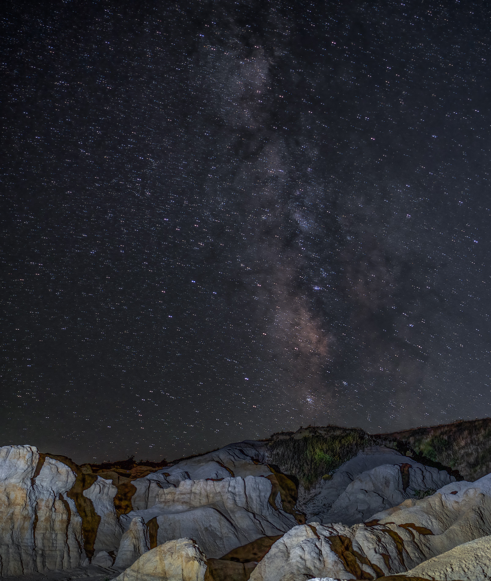 Thanks for your comments, Mike. Adding the solid black layer was a long shot. I had the R5 all set up the way I wanted it and put a 14mm Samyang lens on it. I had not previously used that lens with the R5 and it did not occur to me that there were no contacts between lens and camera, and I had not set it for "shoot without lens." So long story short, I was using an mostly unfamilar camera. I honestly cannot recall which blendng mode I used..I scrolled through and hunted for one that got the effect I wanted then adjusted opacity. I basically use the techniques in Jennifer Wu's book "Photography: Night Sky." I have made som further adjustments and posted it under Judith's comments. |