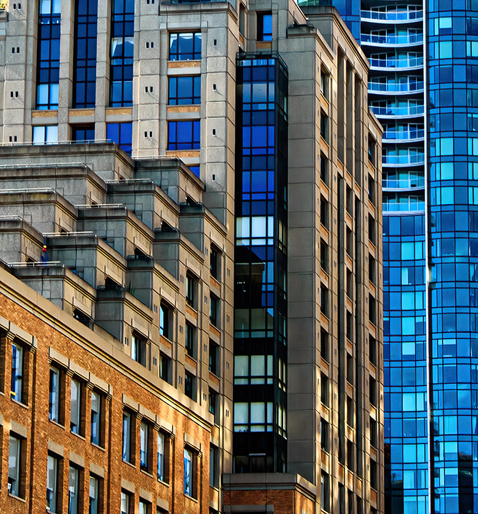 Thank you Julie. I grappled with wether to crop out the right building reflection for a long time. I really wanted as many different colors as possible in the shot. The main question is, when the reflection pulls your eye to the right, can it come back. I decided not to crop the top becuase there was too much going on with the ledges which I think make the shot more interesting. I have posted a version cropped on the right. I would love to hear how the group feels about the crop. I just want to settle it in my mind. I can print it either way. I am so glad you brought this up. It was bothering me. Thanks Julie. |