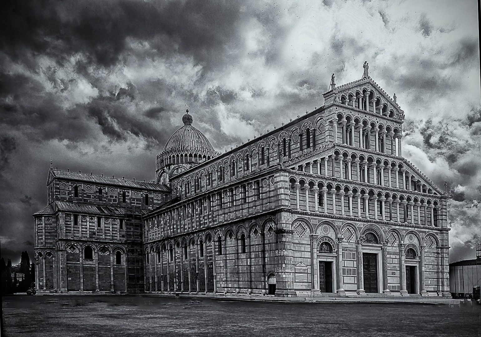 Hey Charles. I like your image. I like what you did with the sky. I noticed there seems to be a halo around the dome, and on top of the building to the right of the main subject. I also think the perspective was a little off. the building seems to lean to the right, I adjusted that in Adobe Camera Raw. I am wondering if the sky is a little overcooked. I love black and white and this is a good image. Hope you don't mind my visiting. |