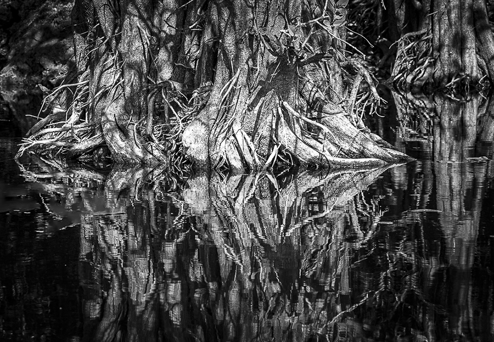 Hey Janice, this image is way cool. I decided to take Andrews comment and make a variation. I cropped the left and got rid of green leaves. I made it monochrome and when I opened it, the light spot in the middle made me focus in, and then I moved around the image. It is one of those "better in black in white" images. Just my take. Oh, and it was a little off-kilter. |