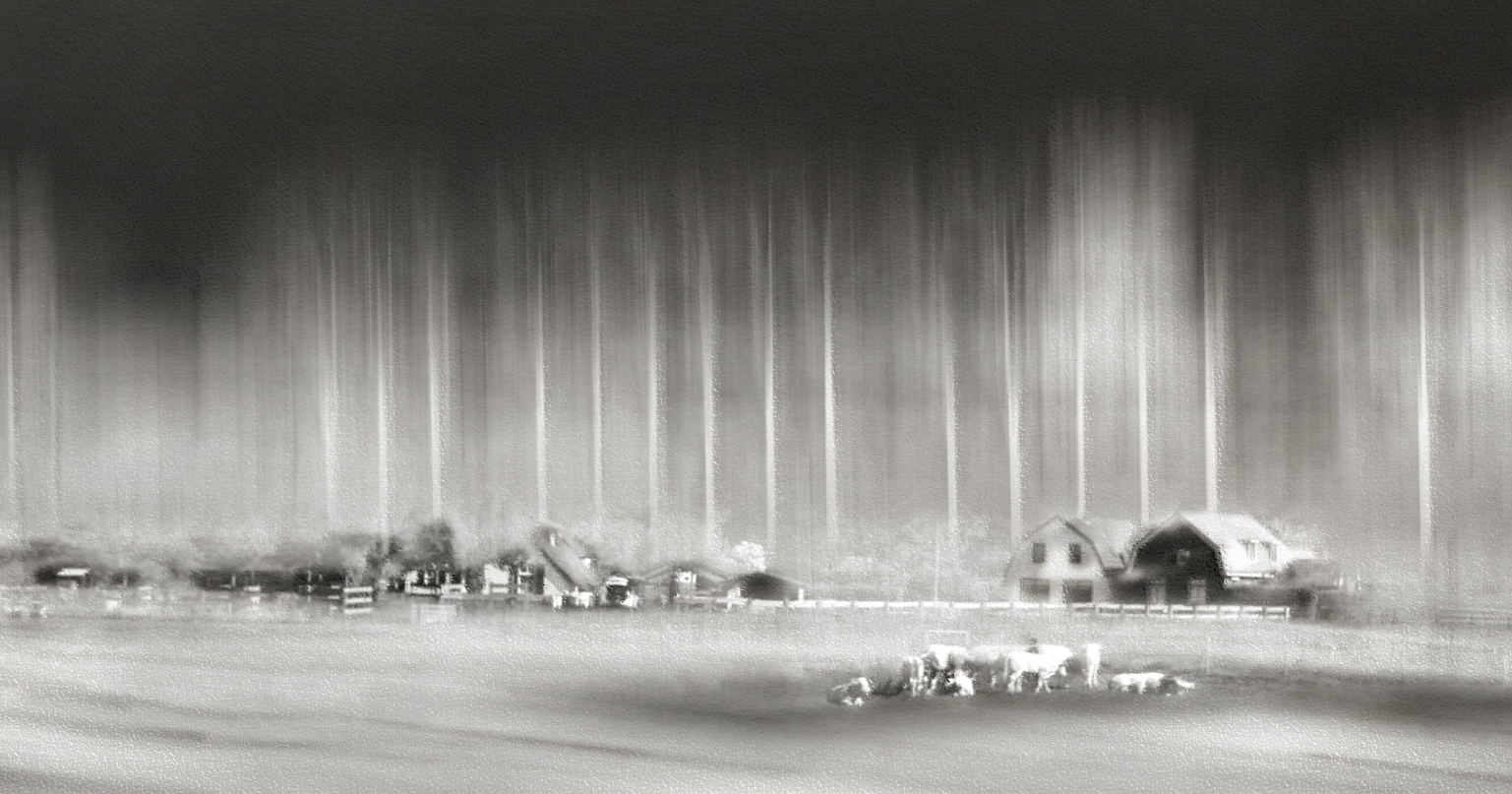 I found creating more intimacy with the cows pulled the eye into the scene and gave a focal point to settle on. I then comfortably found myself moving around the rest of the image. Hopefully the small changes I've made bring the image together a little more. Well done on bravely experimenting. |