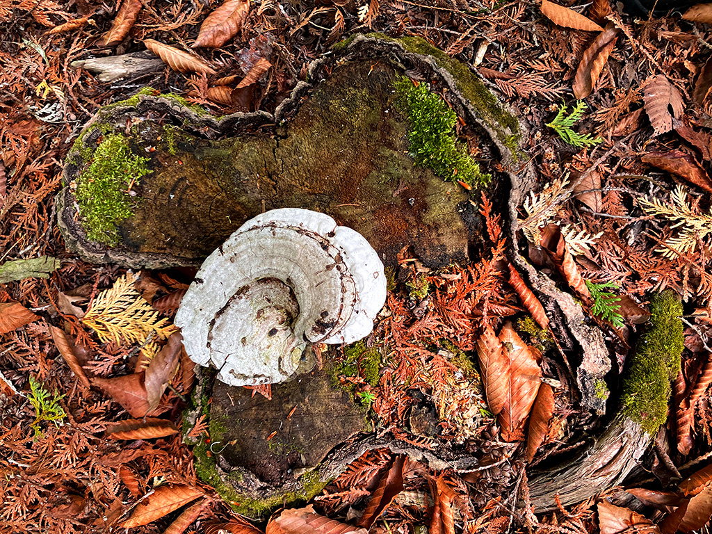 Lots of nice textures and colours here - does autumn come early in your neck of the woods? As Bollin suggests, the textures might give a nice mono image. I've gone the other way, and increased the saturation a bit - I think it brings a little more detail out in the leaves etc. |