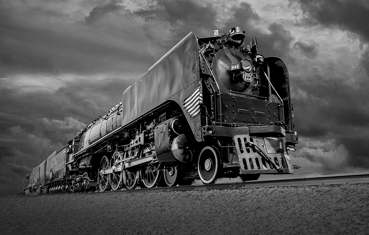 The engine really stands out in the B&W version vs. the color. The engine is tack sharp from front to back and creates strong impact. The addition of the clouds is a plus and adds more power to the overall image.