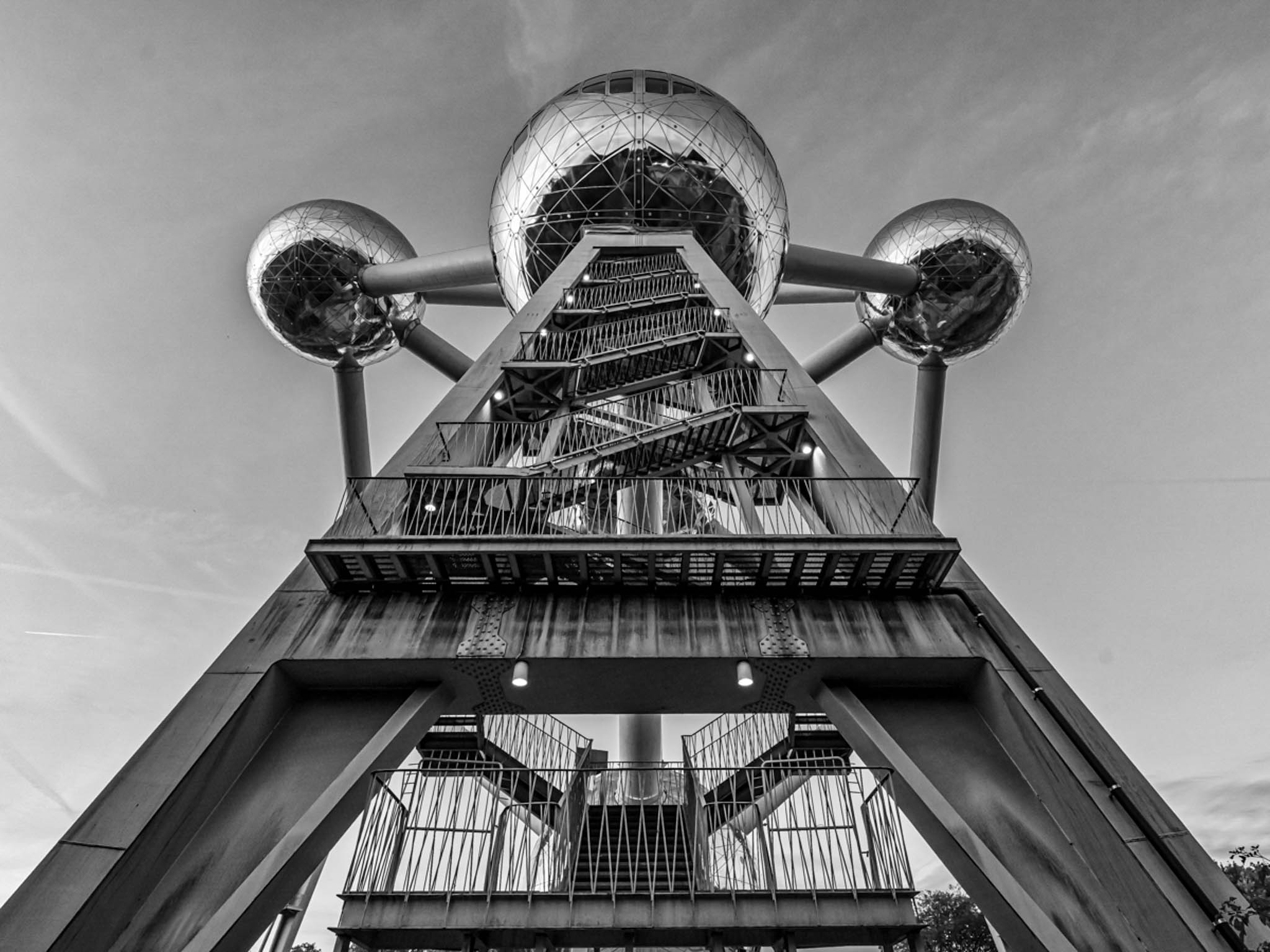 The angle works well to give the feeling of being overpowered by a space alien. Very dramatic and the B&W version is much stronger than the color version.