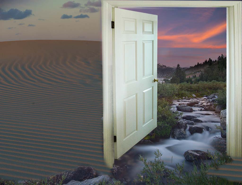 I love your idea of spraying the landscape as a paint and I agree that something is missing with the door.