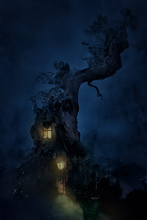 You have created a beautiful image, the tree has a very nice shape and the addition of the lights recreate the idea of someone living inside it.