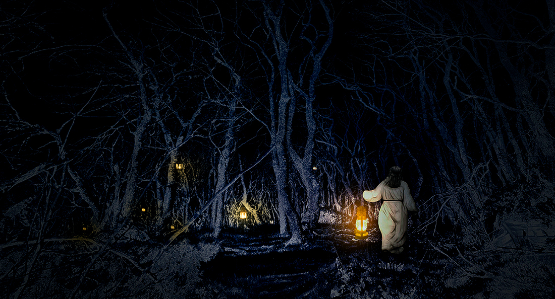 Hi Kirsty, you have created nice image to illustrate your story I like the blue tone in the trees and I agree with the idea of placing more lanterns. My only concern is the luminosity of the women clothes, I found it a little bright for the night scene I suggest you adjust it according with the light of the lantern darkening a bit the right site of the women |