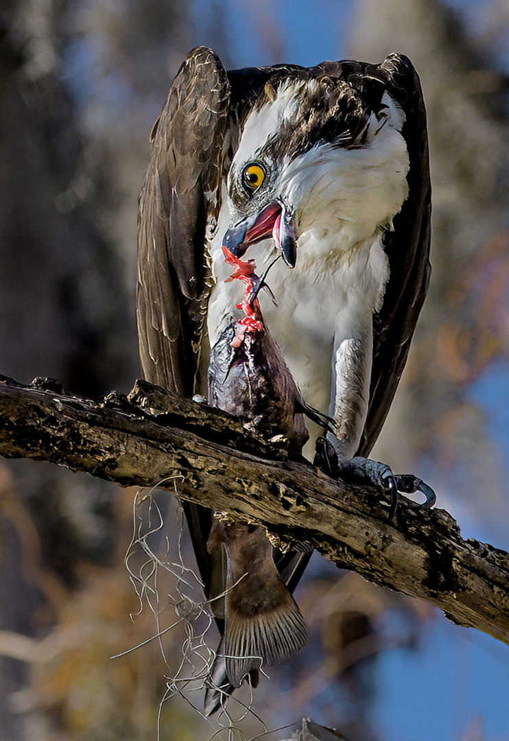 If you look the pose of the Osprey it shows little detail about the whole body because the wings are tide to the body and the white feathers in the head are a little blow out. White feathers are blow out very easily so a hight light control is needed when you set the exposure.