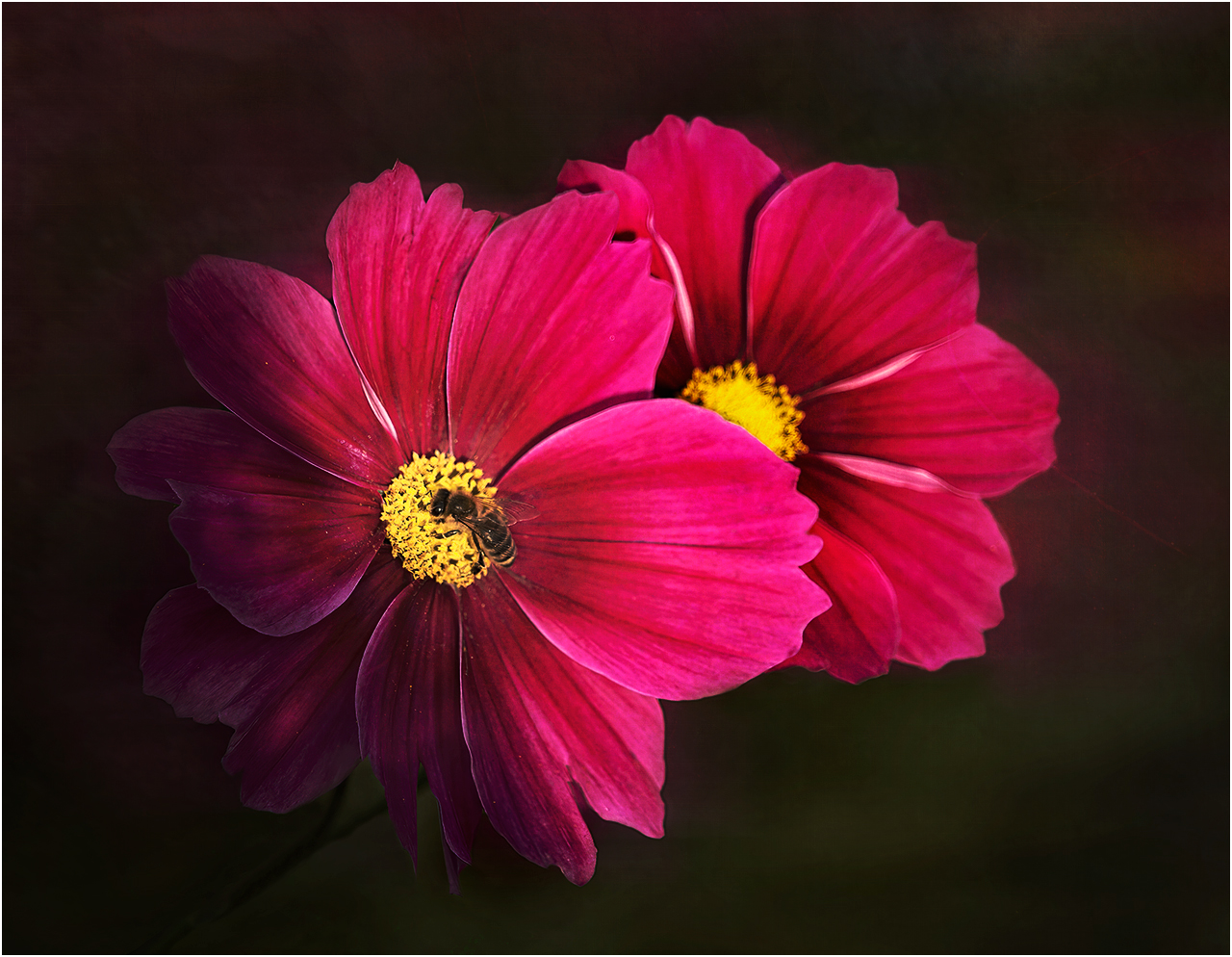 I like your version with the dark background but I always have the feeling that Dahlias become more delicate when they are presented with a light background. I played a little with your image using Nick software, I have applied a vignette with one of the pinks from the petals, after an extract detail to enhance the texture in the pattern of the petals and also I use the liquefied filter to clean some of the petals in the borders. This is only a different version that I hope you like. |