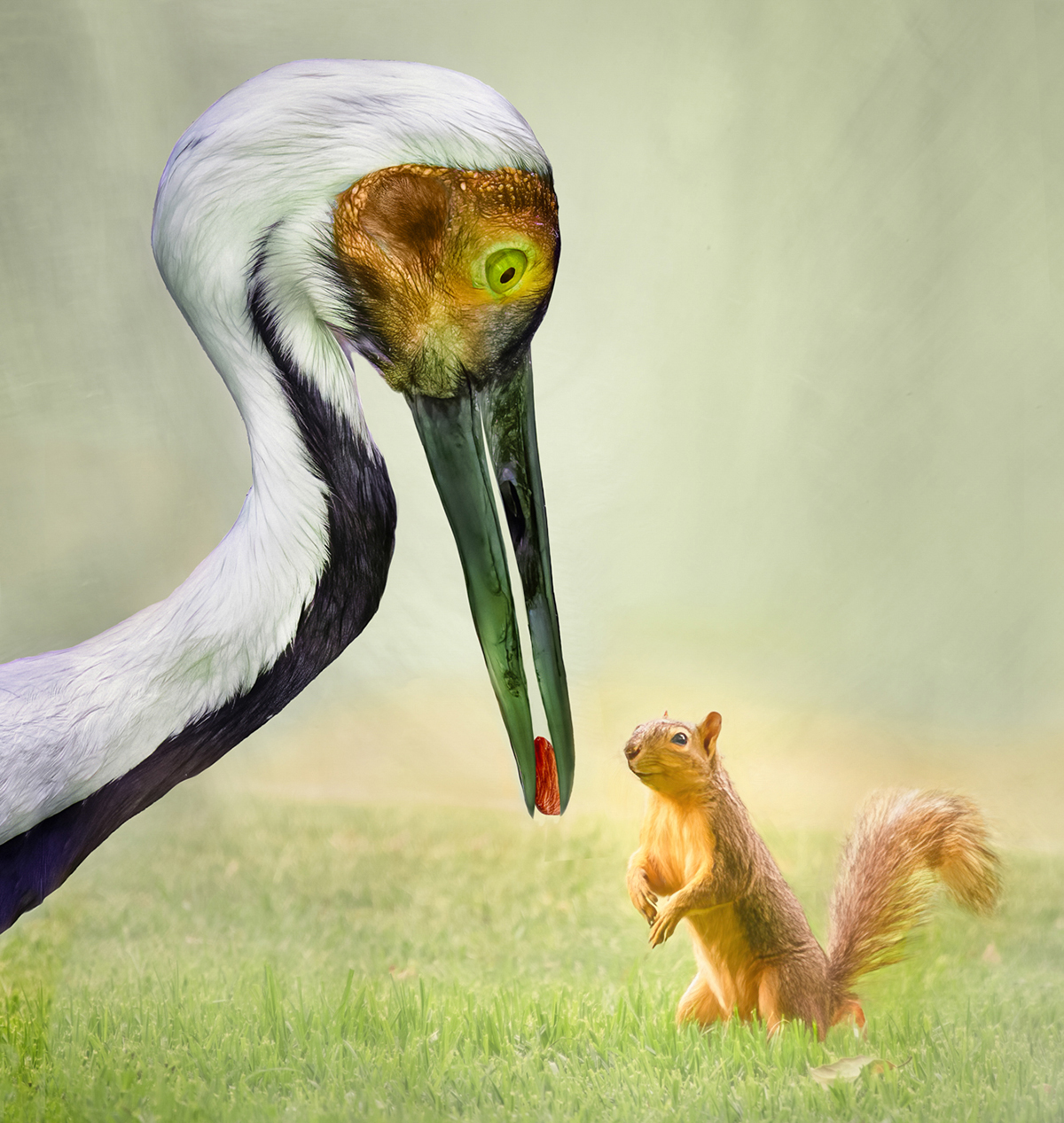 I really like the colour palette and the painting finish in the bird I would like to see the same effect in the squirrel.