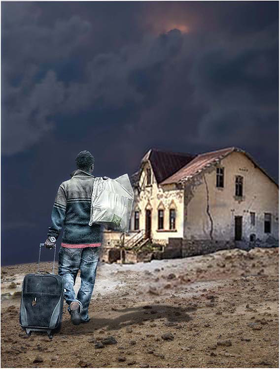 Great story in this image, and an exquisite tone mapping treatment. The dramatic sky is a nice addition, and the colours work very well together. My only concern is the size of the house, as Brad mentioned, it feels out of proportion in terms of perspective, which gives the impression that something is not quite right.