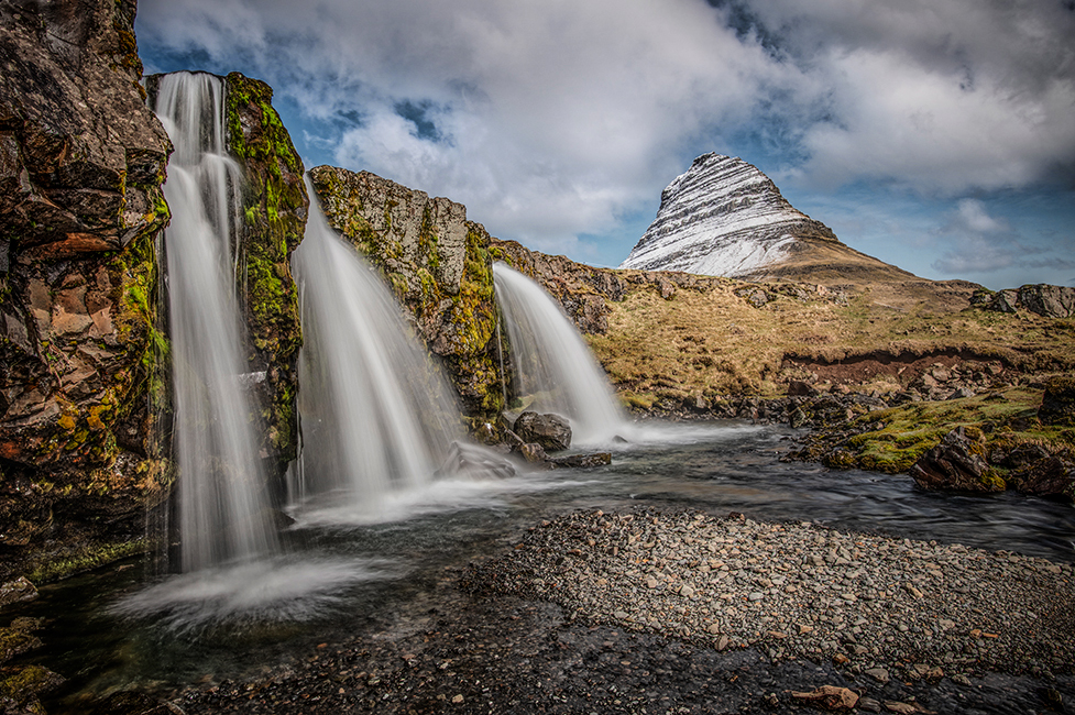 Hi Isaac, what a wonderful place Iceland is for photography! I like the composition of this image, where the repeating waterfalls lead us toward the mountain, all framed by a beautiful, cloud-filled sky. However, I feel the image has a strong HDR effect that makes it look a little flat. I suppose this is the result of the editing, so I brought it into Photoshop and adjusted the highlights and shadows slightly, trying to recover some of the dimensionality of the landscape. I hope you don't mind, I just wanted to explore an alternative interpretation. |