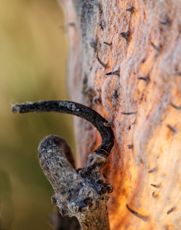 I have to agree with all the previous comments- leading line to the in focus head is nice and does emphasize it. The lighting also makes the segments stand out with great color in them. |