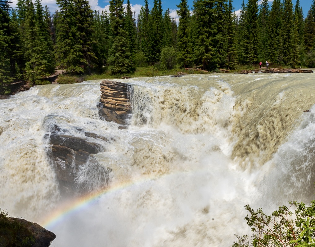Hi Bob, I hope you are feeling better. You were so lucky to catch a rainbow on the waterfalls! The image has potential - since the focus is the water and the rainbow maybe you could crop the right side - keep the 2 people for perspective but not the full group. Also maybe crop the foreground to take away distractions. The water seems a bit soft, I feel that either you make it a bit sharper or maybe you could slow it down a bit and it would give a more mysterious feeling.