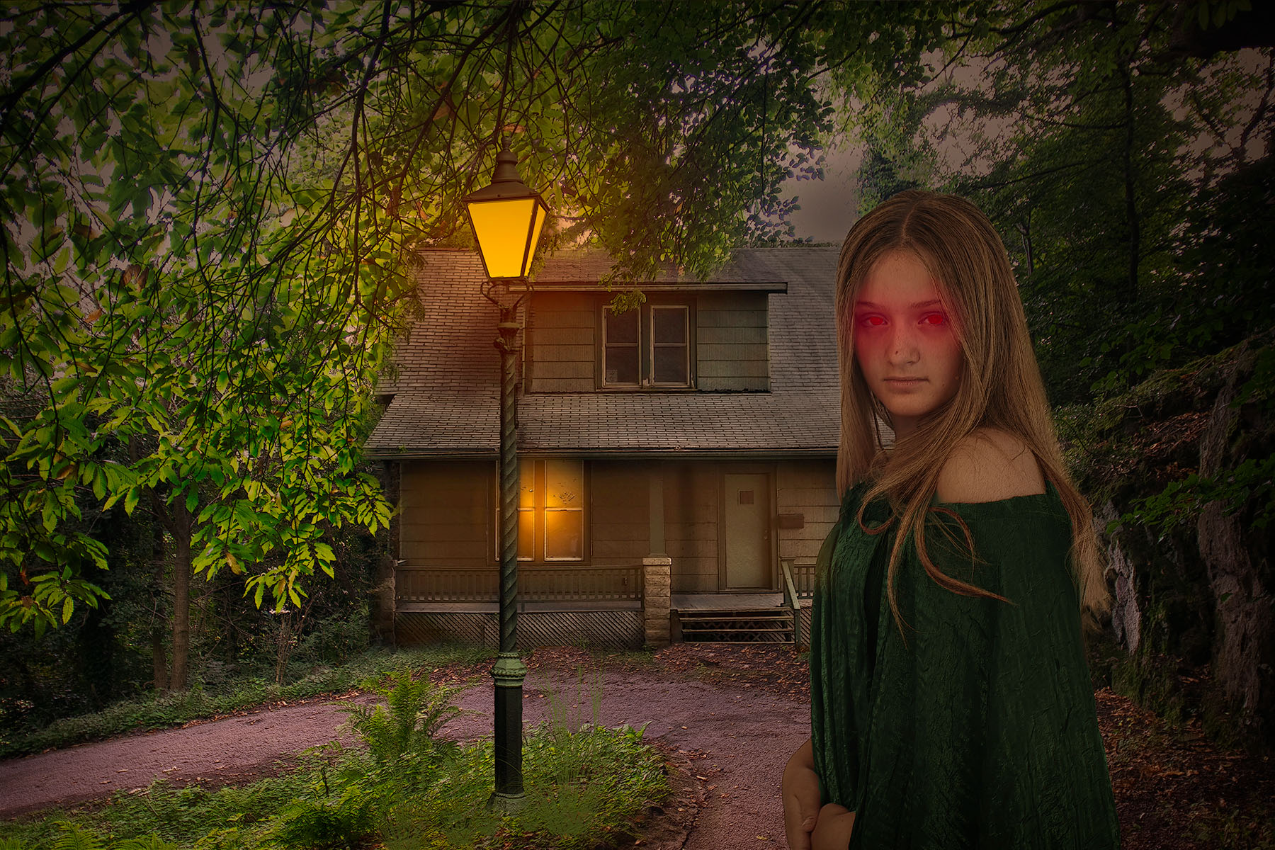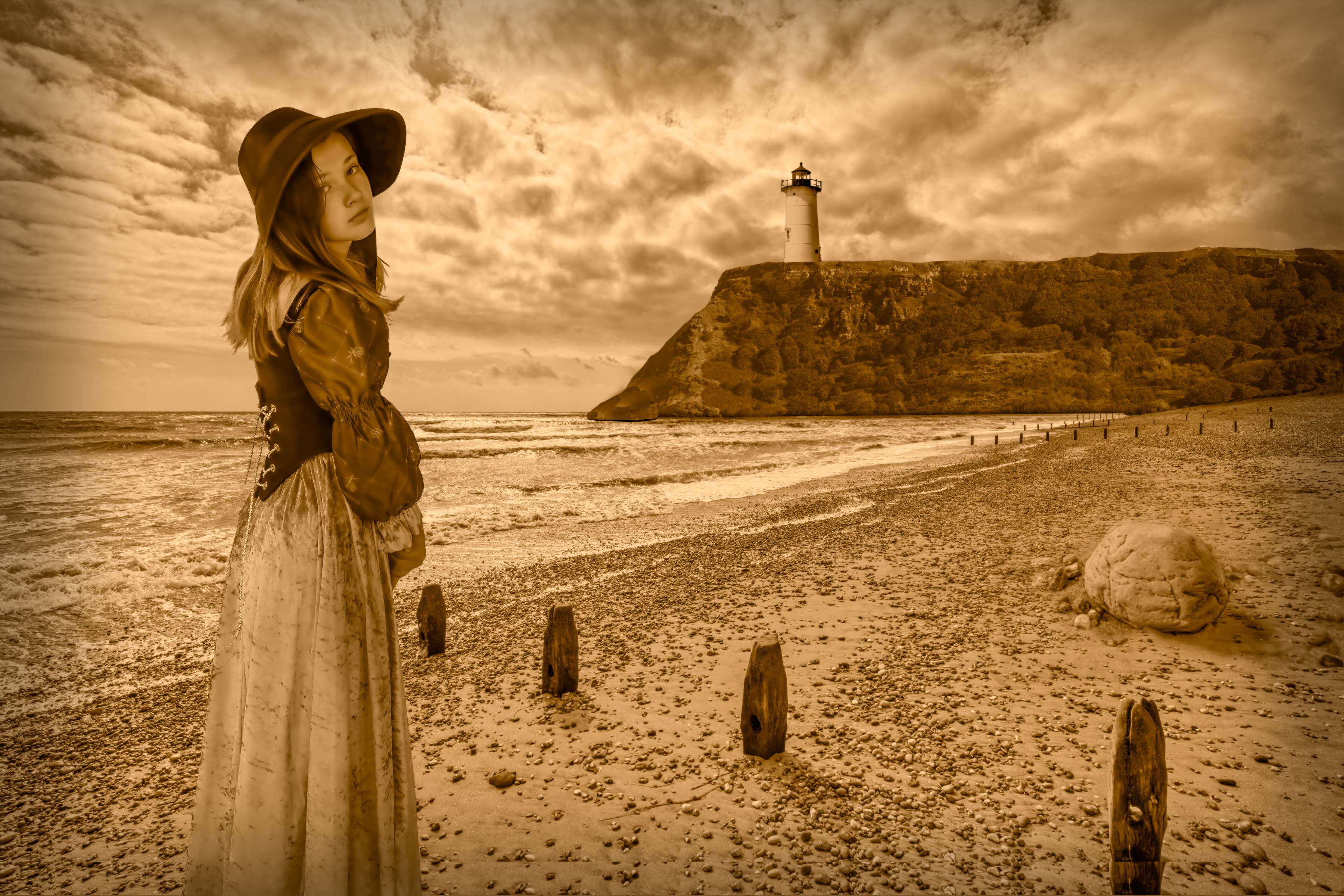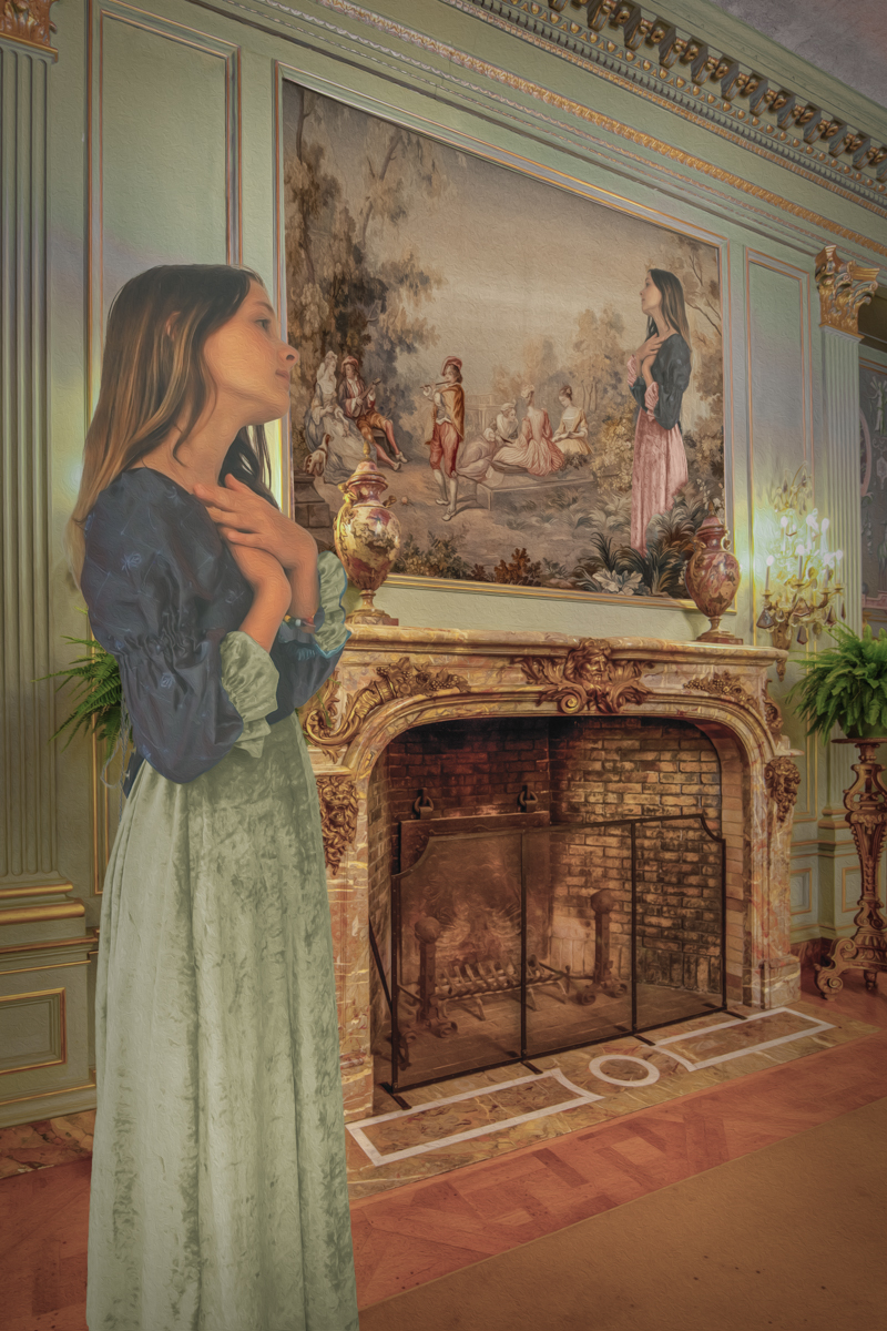 This is just lovely! Her hair fits in so well with the color of the sky from the dunes and the green from the woodland is perfect. Have you tried more of a green for her dress - perhaps a closer match with the woodland?
