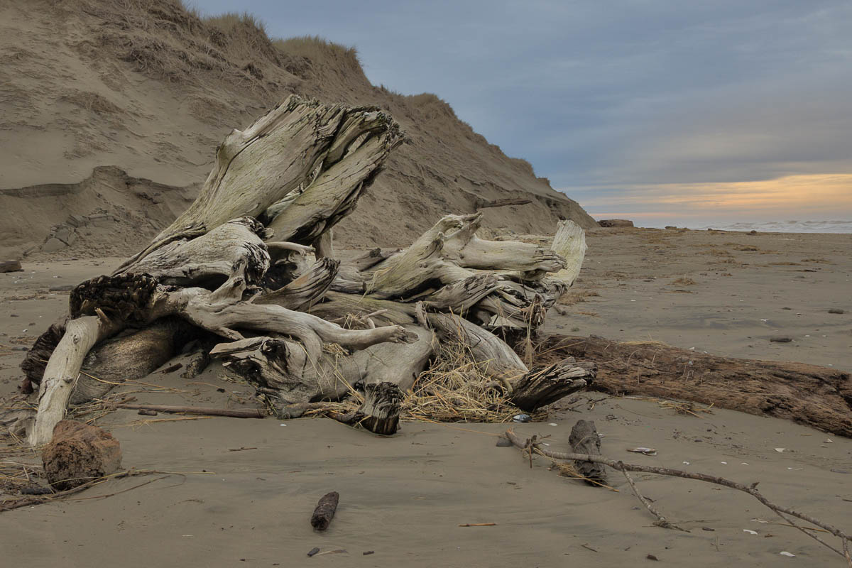 I took a quick crack at some edits on this as I really wanted some separation from the sand hill in the background as well. I masked the tree stump and duplicated it and inverted it. With each mask made adjustments darkening the background and brightening the stump. I also adjusted the sky a tad and put in a radial filter to bring out the soft yellow of the sunset(?). Take it for what it is, as we know, we can all take one image and come up with a different look and feel! |