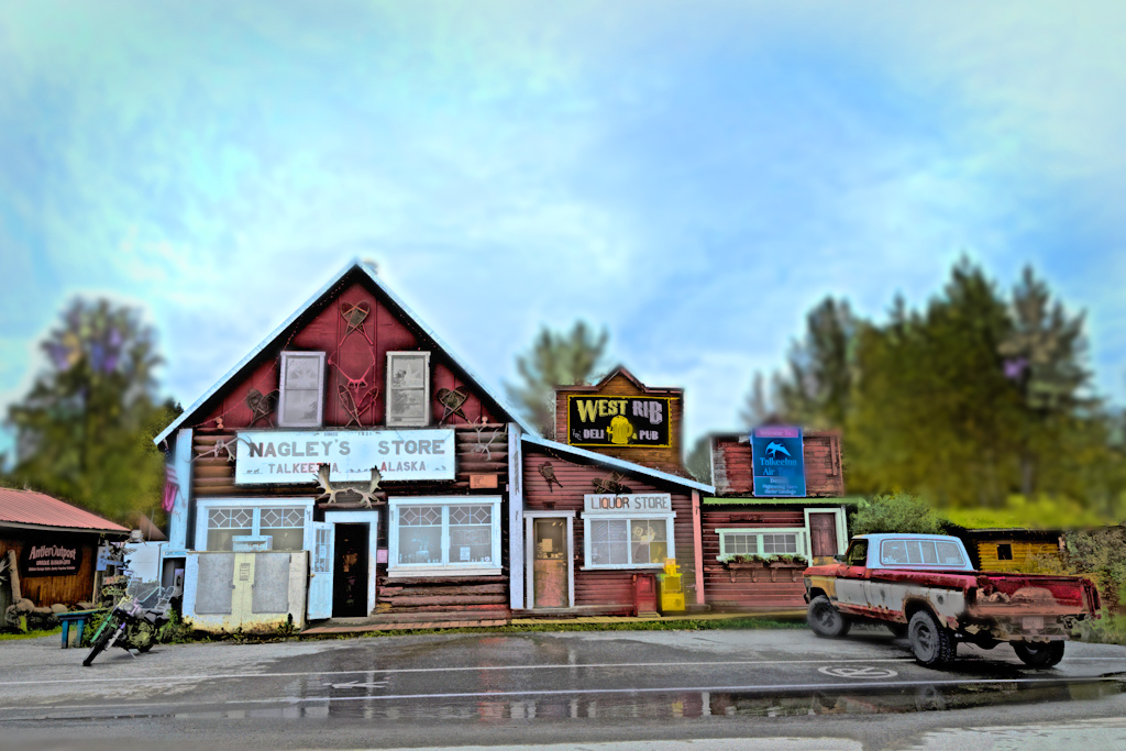 I am just wondering how/why the sign post is leaning to the left, whereas everything else (the fence, tomb stones) in your original is leaning to the right?