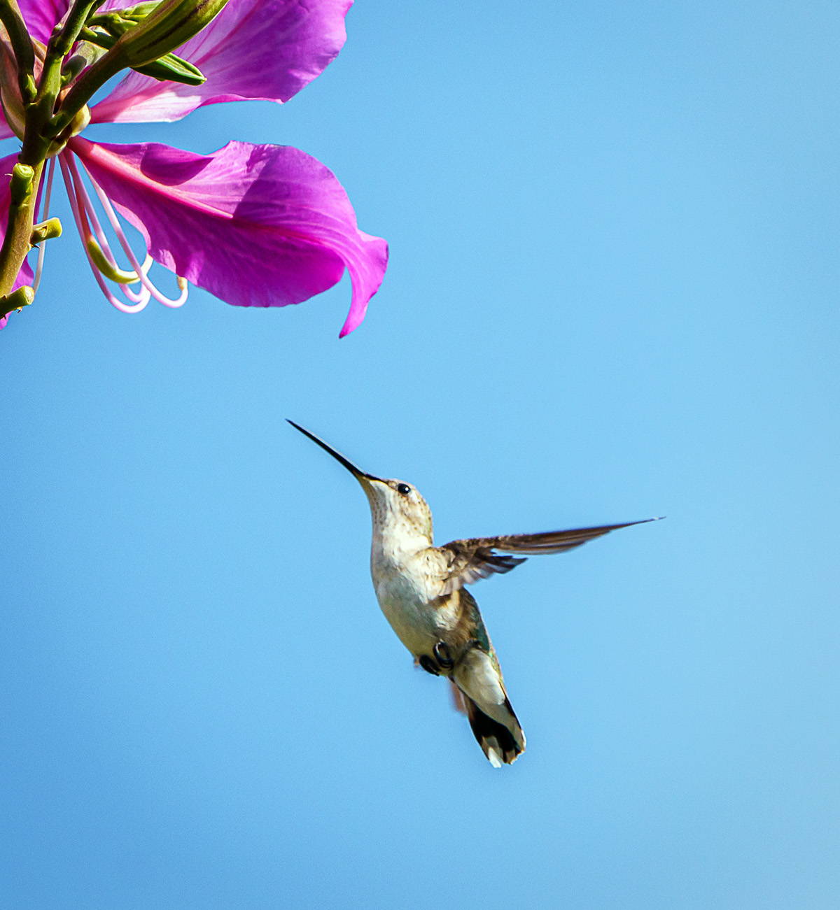 Thanks so much for the thoughtful response. I do shoot in raw and did not use a tripod. I actually like this photo for its uniqueness and the fact that the hummingbird's eye and beak are framed by the petals of the flower. I have attached a more traditional photo taken the same day as well. I appreciate the tips for future reference if I am photographing more of a created scenario as you have described. I like the idea of a smaller F stop to enhance the bokeh. I process mostly in lightroom, but will sharpen with topaz. I also have yet to figure out how to resize in lightroom so that is always done in photoshop. I look forward to learning more from this group. Thanks again for the warm welcome. |
