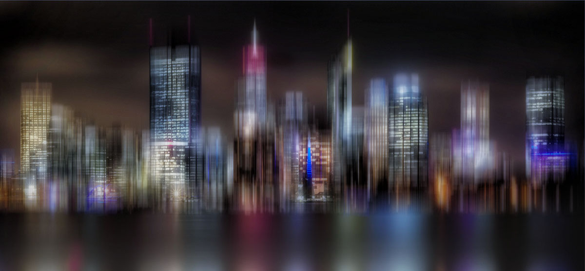 You can build on your image and make it really "pop" by brightening it and cropping the bottom reflections so that the buildings are the focal point of interest. I've built on your image to demonstrate what I mean. You might have a look at a technique called the Adamski effect where you select a subject to be in focus and the rest is in a dreamy, blurred background. Well done in turning a normal city scape image into a creative one. |