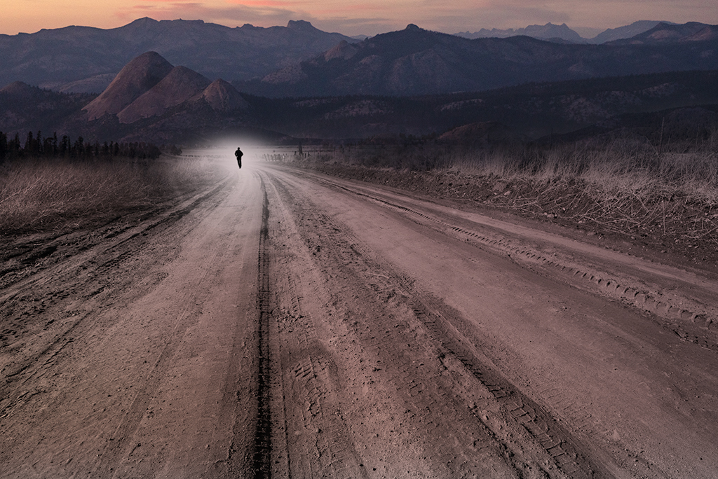 Brad, what a lovely concept and I like how your son is more in the distance giving the impression that he's already walked the journey from childhood into adulthood. Just a thought you might consider selecting the sky of your original image and placing it over the final image to blend the elements and the colours of your composite. As it is, the road is bright for the scene. With that minor adjustment, the viewer is drawn directly to your son and the lens flare. I've taken the liberty of showing what I'm suggesting. I've used the multiply blend mode in PS and reduced the opacity to 60%. I've also masked out the flare by 40% opacity. |